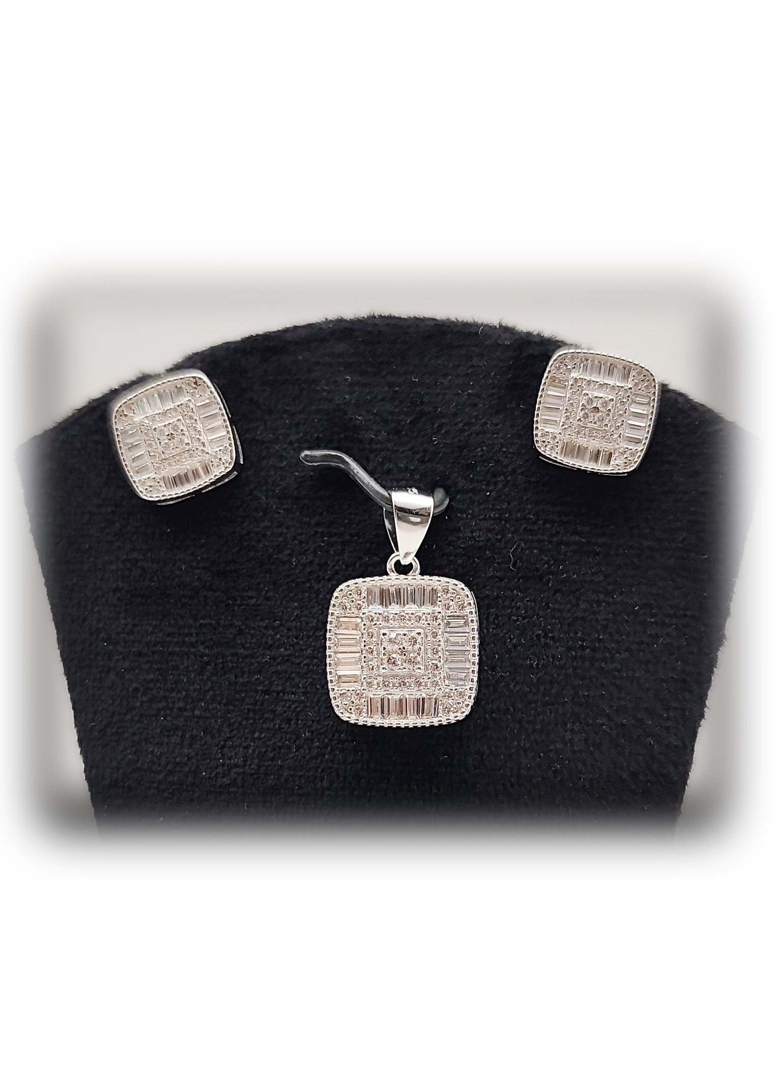 A graceful fusion of shimmering round stones πΉ and sleek baguette cuts π set in 925 sterling silver βͺ. Symbolizing eternal brilliance β¨, this pendant set adds a touch of timeless sophistication π to any attire.