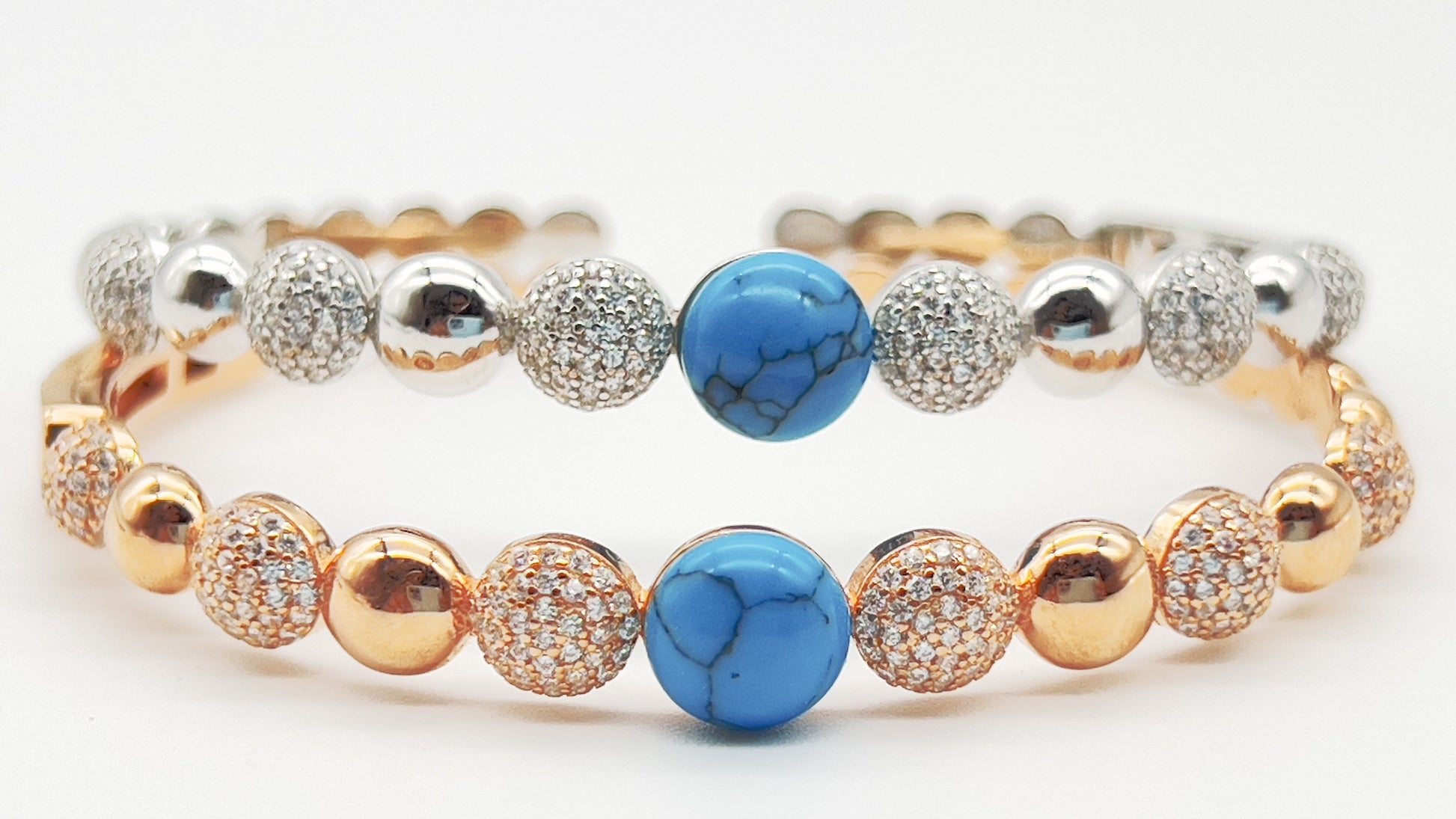 925 Sterling Silver Rose Gold Plated Bangle – Turquoise & Micro Pavé Center ✨💙