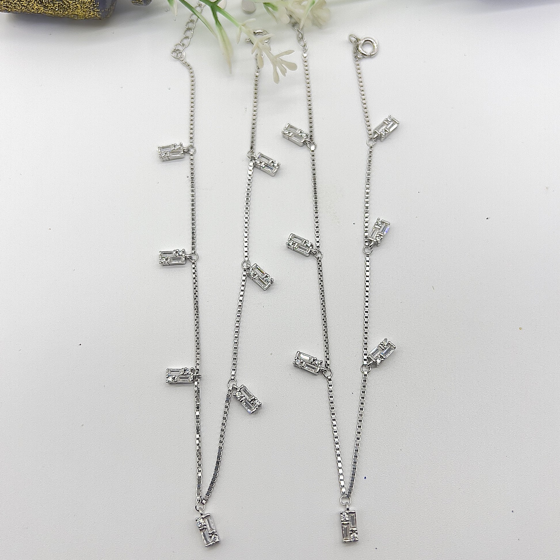Shine every day with the SparkLite Anklet 👣—crafted in 925 Silver with White Gold Rhodium plating and set with Budget American Diamonds 💎. A perfect blend of affordability 💰 and elegance 🌸, making your daily look sparkle effortlessly 🌟.