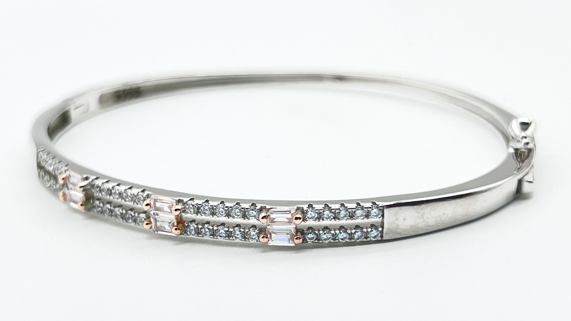 Bangle925 Silver Bangle – Micro Pavé with Baguette Diamond Cut Design ✨💎