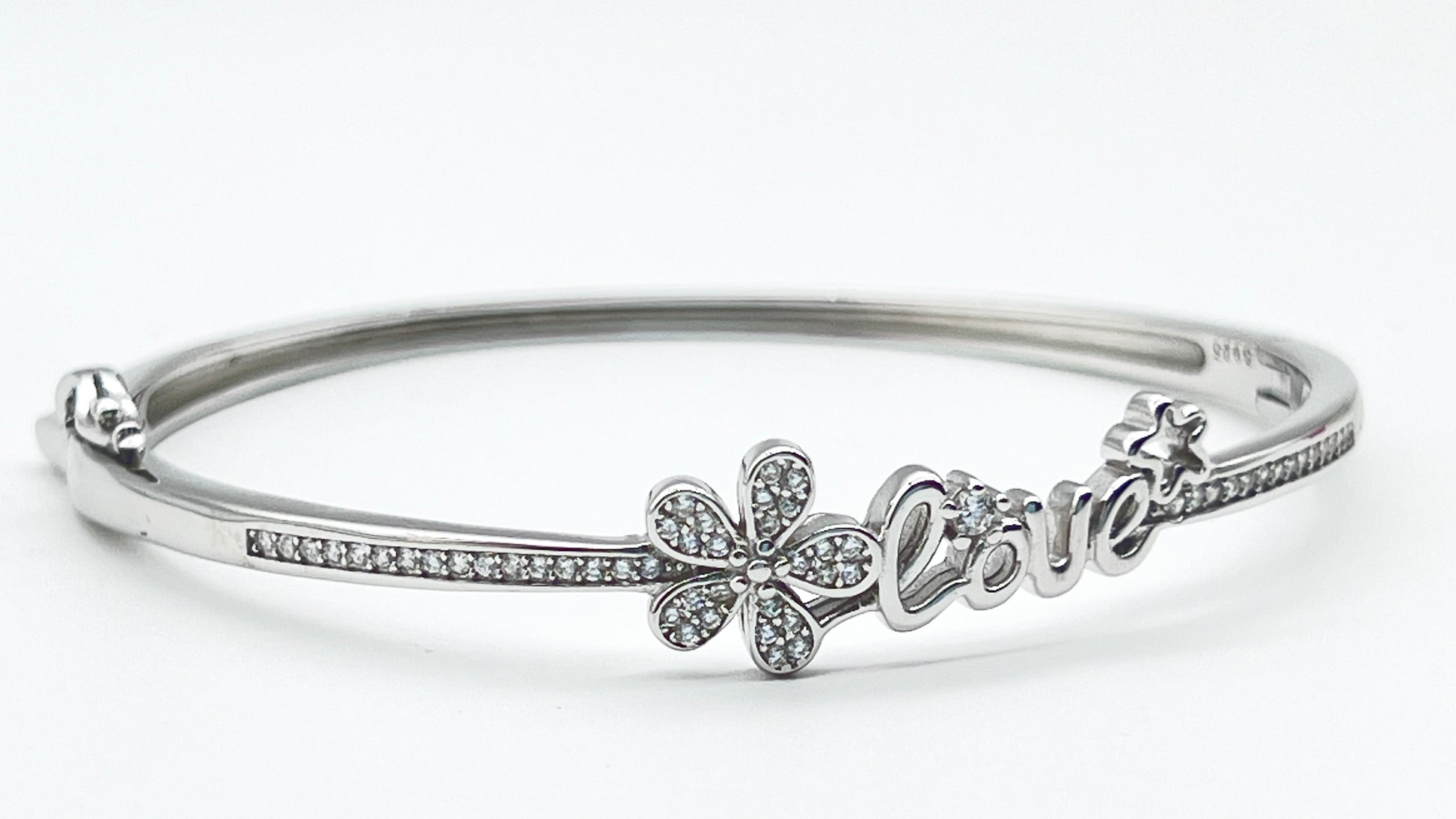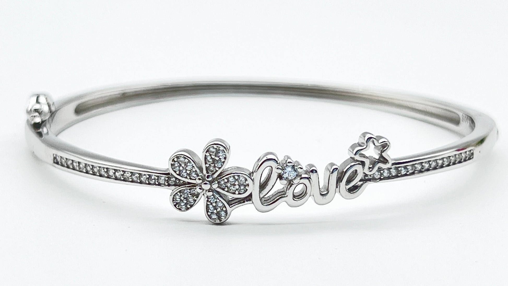 Add a touch of romance to your style with this beautifully crafted 925 sterling silver bangle, featuring an elegant LOVE design. Perfect for everyday wear or as a heartfelt gift, this bangle blends simplicity with meaningful charm.
