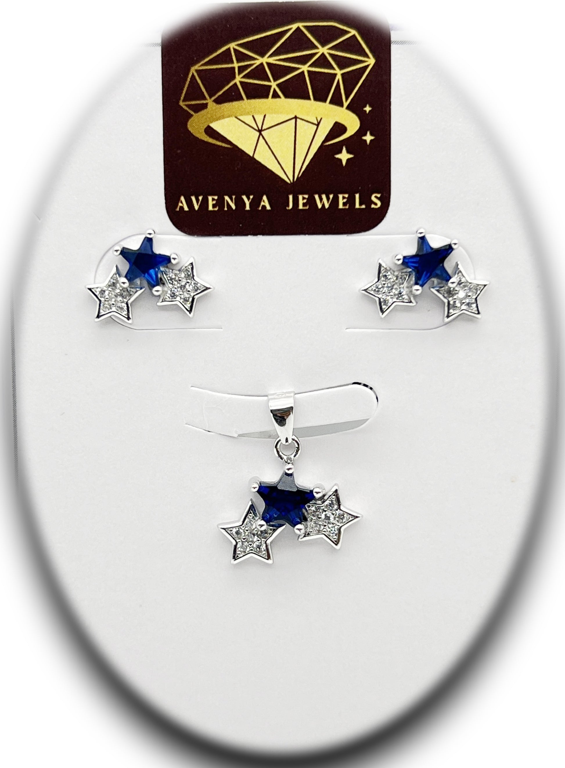 This stunning 925 Silver pendant set features a mesmerizing star sapphire centerpiece, beautifully accented with sparkling white American Diamonds π. Handcrafted with precision, it exudes celestial elegance and timeless charm, perfect for festive occasions, gifting, or elevating everyday wear π