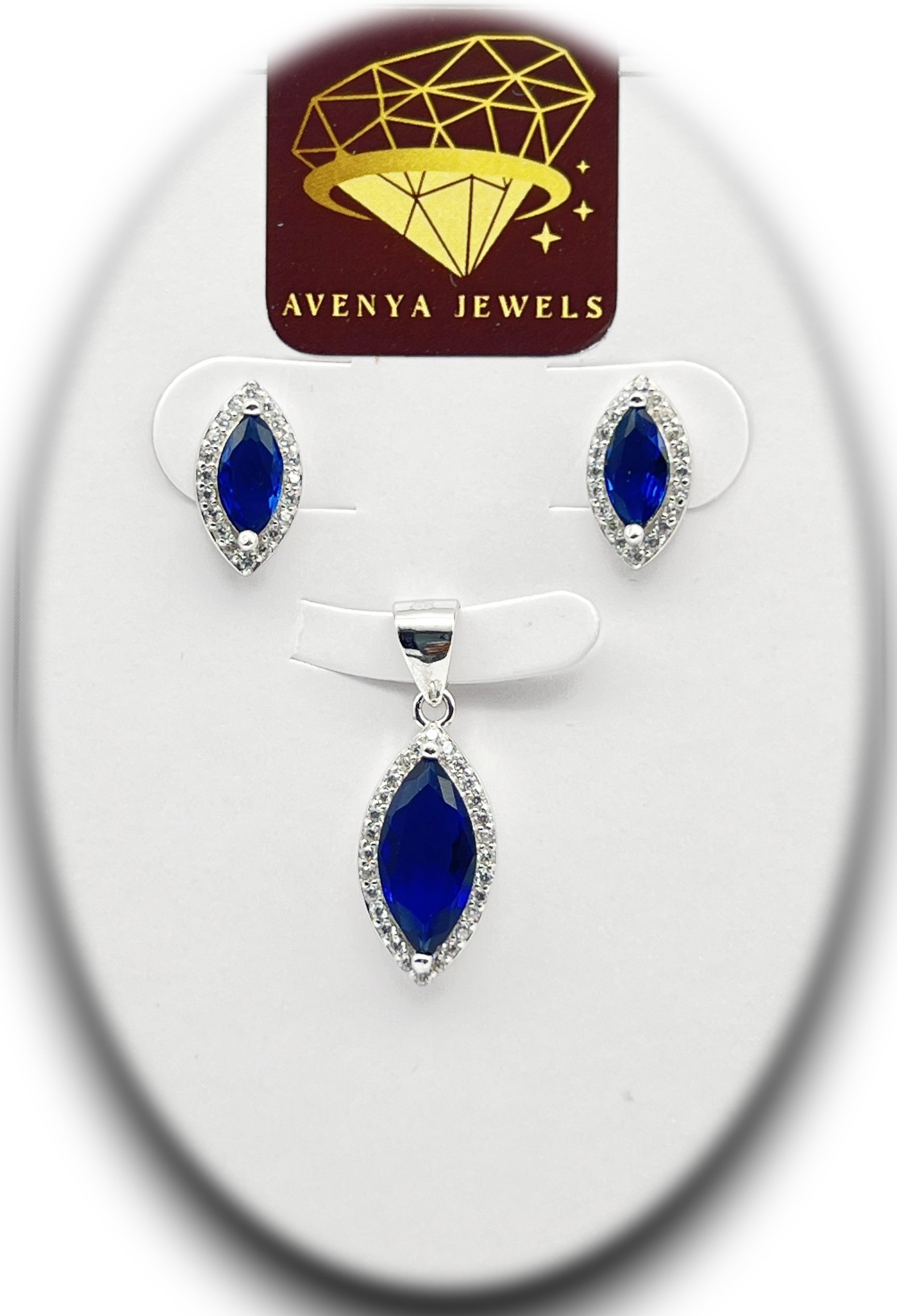 This stunning 925 Silver pendant features a brilliant marquise-shaped blue sapphire at its center, surrounded by a sparkling halo of American Diamonds π. A timeless and elegant design, perfect for adding sophistication and glamour β¨ to both everyday wear and special occasions.