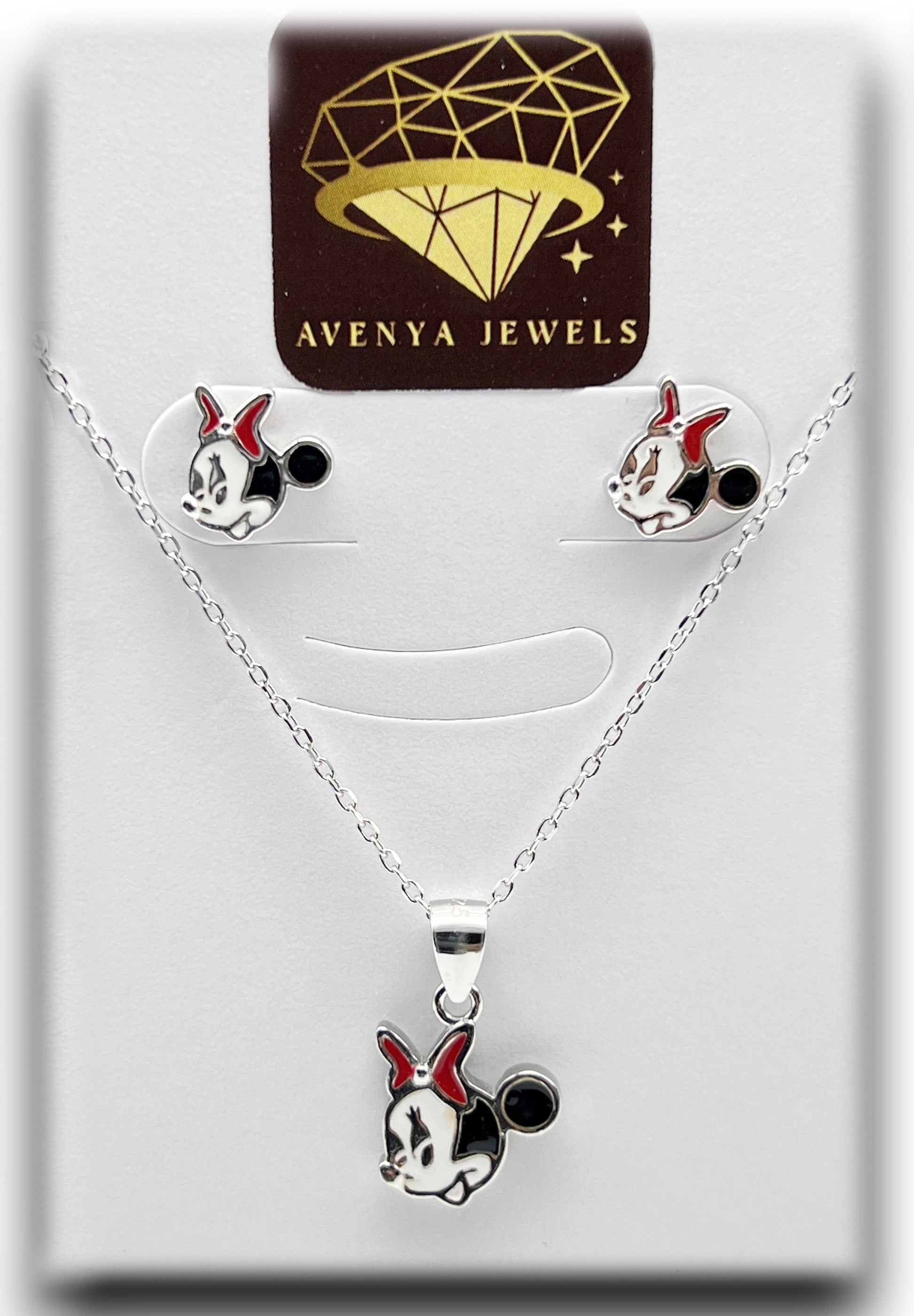 This adorable 925 Silver baby pendant set features a playful Minnie Mouse design with matching earrings π. Lightweight and carefully handcrafted, itβs perfect for everyday wear, festive occasions, or gifting your little one πΈ