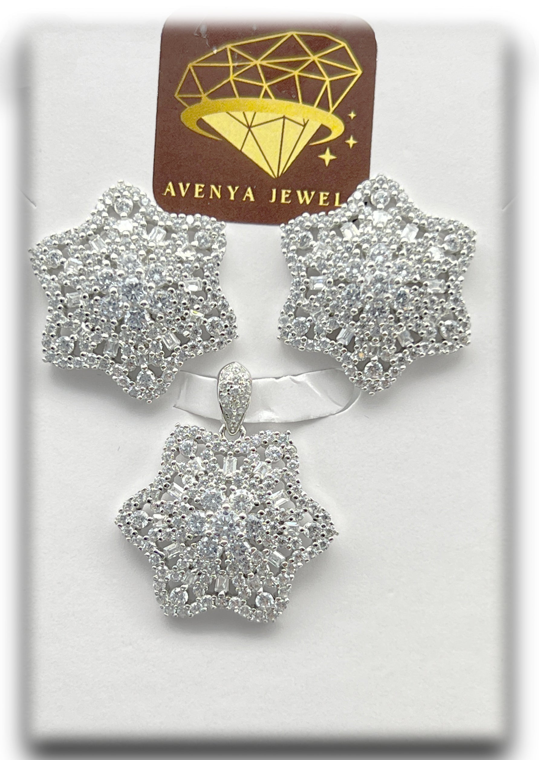 Shine with sophistication π« with the Radiant Luxe Pendant Set π crafted in pure 925 silver π. Adorned with sparkling baguette and round American stones β¨, this elegant piece adds a touch of luxury to every look πβperfect for parties, weddings, or gifting π.