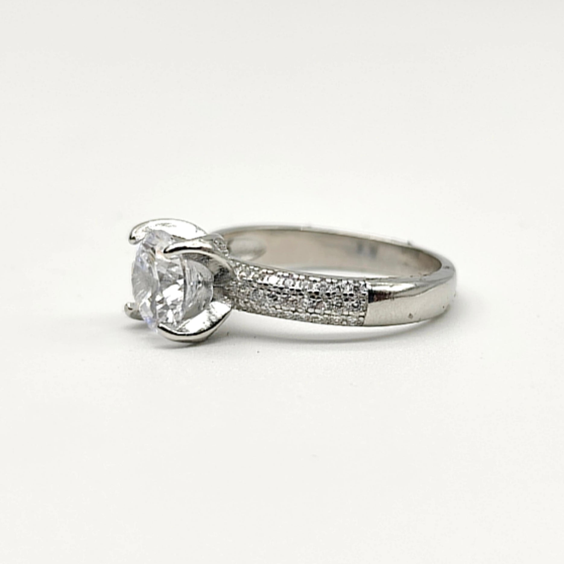 Shine with grace! This 925 silver womenβs ring features a dazzling 4-prong center stone π , flanked by 3-line micro pave stones β¨ on the sides, creating a perfect blend of elegance, sparkle, and sophistication ππ.