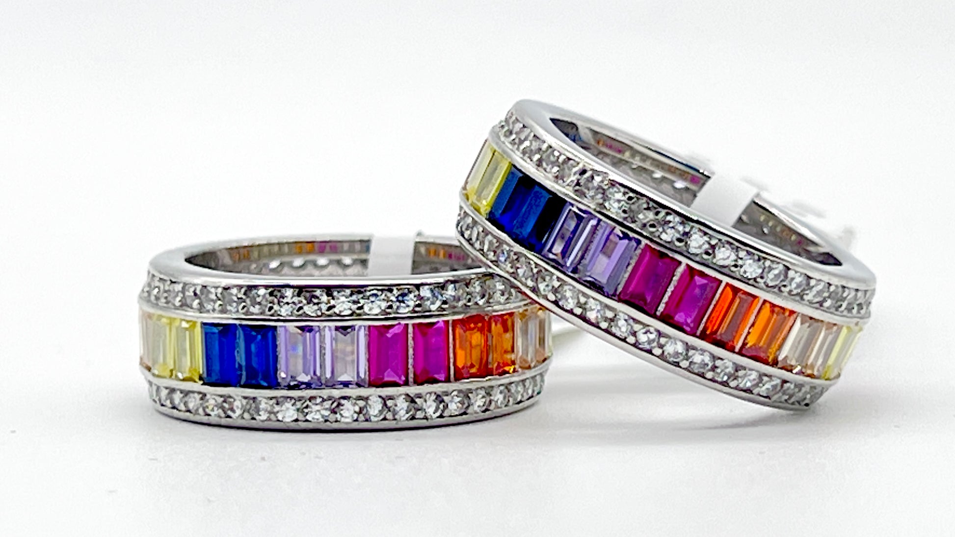 The EternaBand Ring, crafted in heavy 925 sterling silver π, showcases a stunning play of multi-color brilliance π. A bold yet elegant wedding band that symbolizes unity, love β€οΈ, and timeless style.
