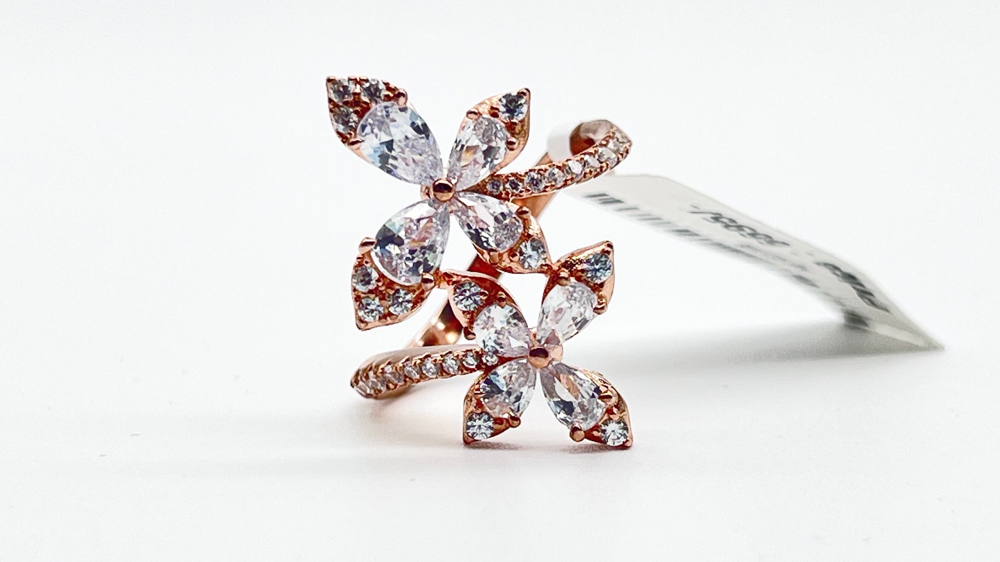 Elegance with meaning! Crafted in rose gold plated silver, this ring highlights a butterfly embracing a cross in stonework, reflecting strength, beauty, and spiritual balance