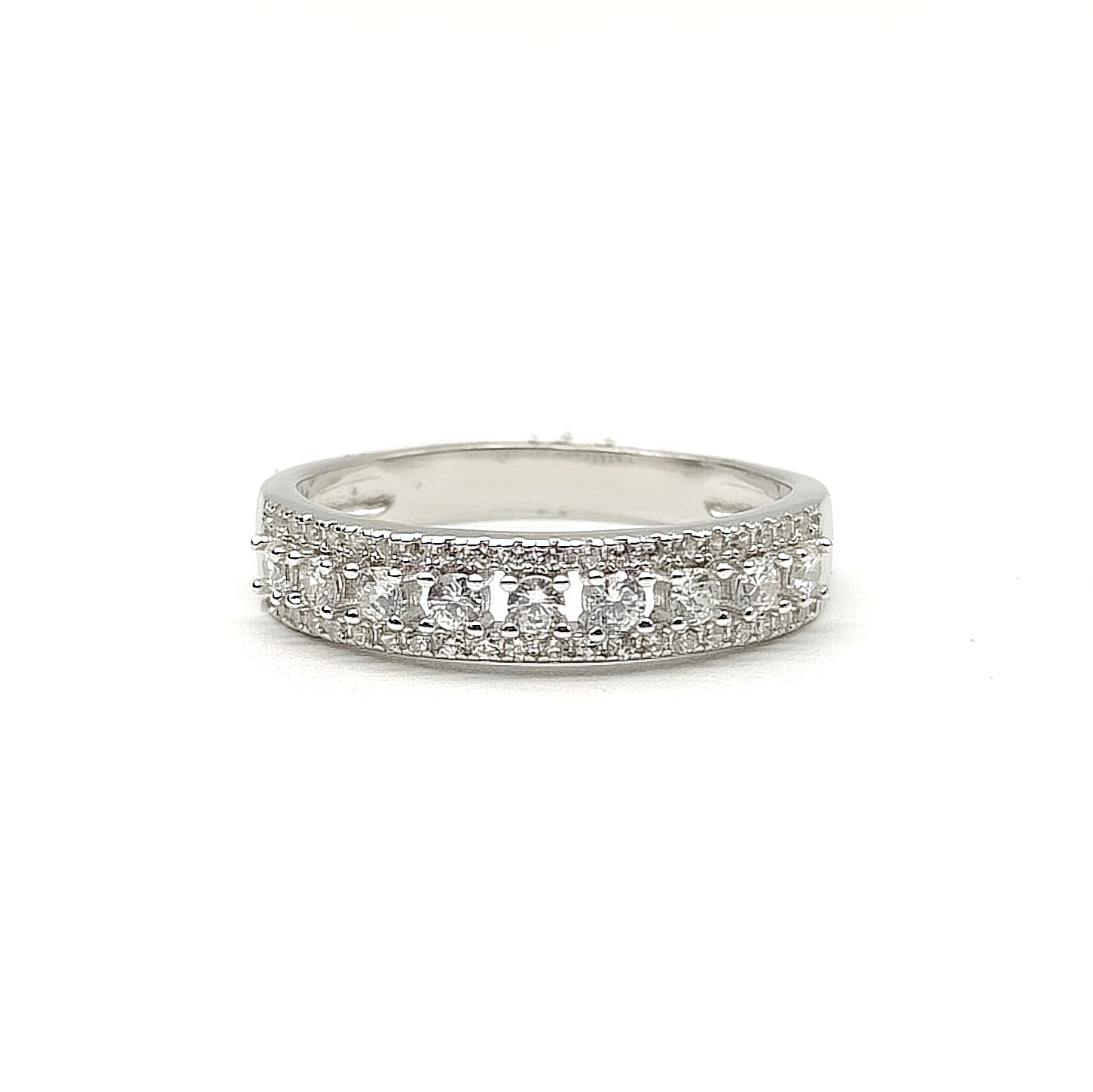 Exquisite and timeless! This 925 silver half-eternity ring features sparkling diamond-like stones π set along the band in a luxurious, classic style, perfect for everyday elegance or special occasions πΌπ